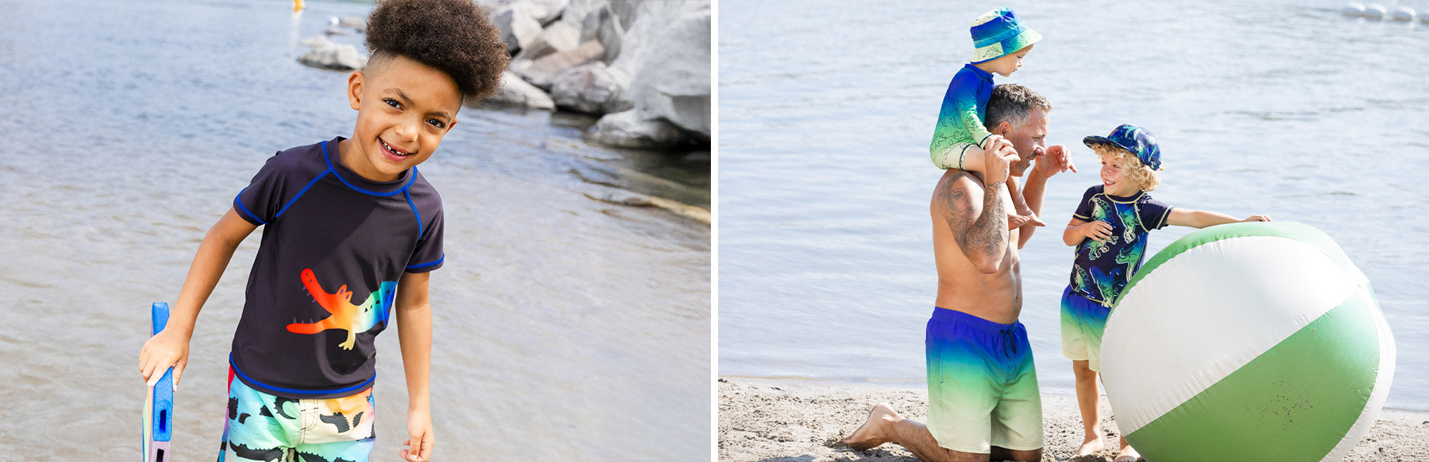 Dessinés à Montréal, nos maillots de bain pour garçon conviennent non seulement pour la piscine, mais aussi pour la plage et toutes activités extérieures, grâce à leur protection UV FPS de 50+. De plus, ils sont conçus à partir de Polyester recyclé REPREVE qui est fait grâce à des fibres de bouteilles de plastiques recyclées. Cela rend les produits très résistants, ce qui te permettra de les garder longtemps ! En plus, on contribue ensemble à protéger nos océans.