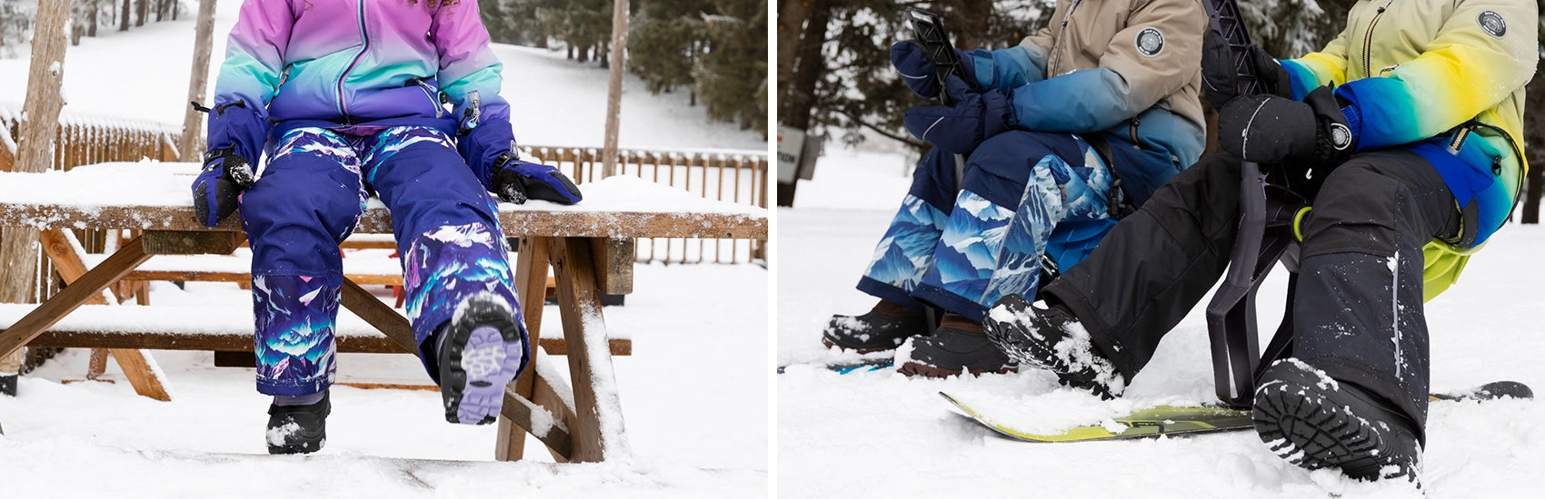 Les bretelles des pantalons sont aussi réglables et amovibles, et les salopettes de neige offrent une ceinture réglable pour s’ajuster à la morphologie de l’enfant. Ils en sont d’autant plus confortables et lui permettent de se mouvoir librement. Des pare-neiges ajustables aux chevilles évitent les entrées de neige indésirables sous le pantalon.