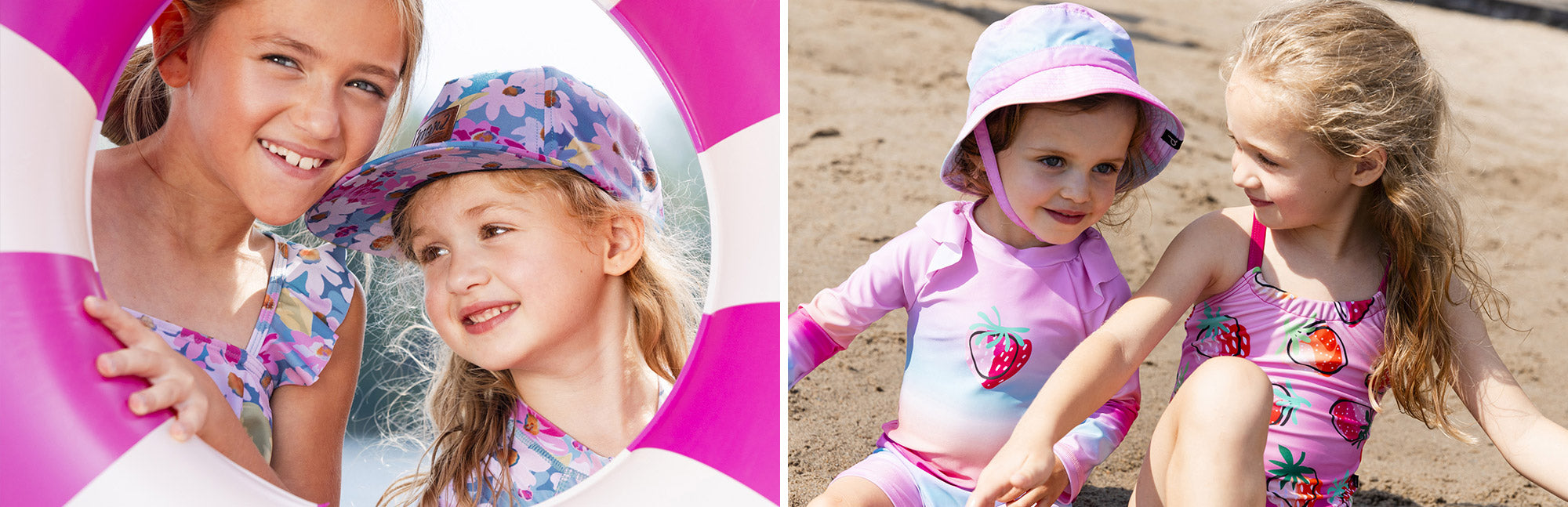 Whether you choose a 6-month-old swimsuit for your baby girl or for your 9-month-old baby niece, you can complete the look with our selection of beautiful hats and headbands!