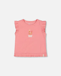 Our Rib Tank Top with Frills Coral Pink is a must-have for little girls with an ultra-sweet sense of style. Frilled accents at each armhole offer a bit more coverage than the typical tank, while a ribbed texture and a round neckline make it incredibly comfortable to wear. A graphic print on the chest and frills around the hem add the perfect finishing touches!